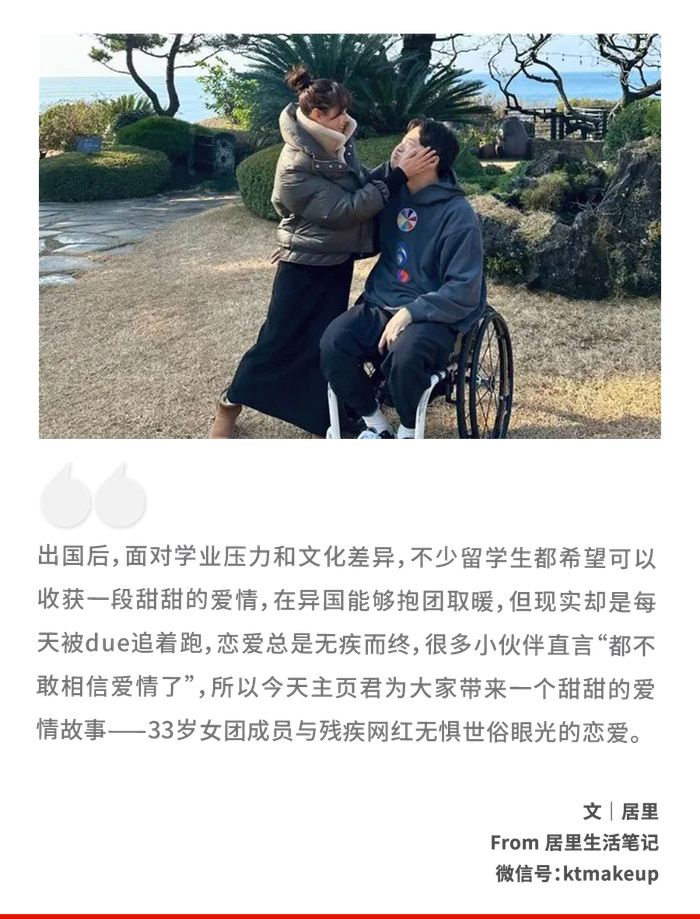 女方是韩国女团出身的明星,而男方是瘫痪9年的残疾人网红,他们冲破世俗的眼光在一起,这段“轮椅爱情”一曝光就备受关注。