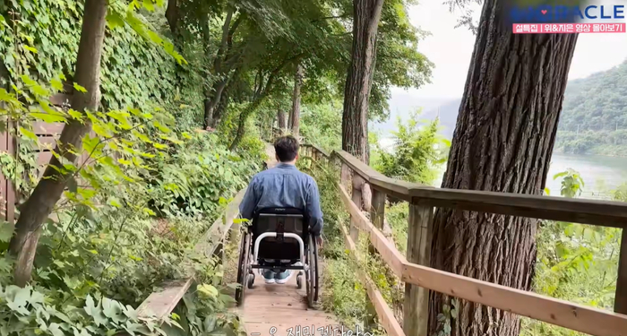 宋枝恩总是在朴伟身后,记录他推着轮椅努力前行的背影。