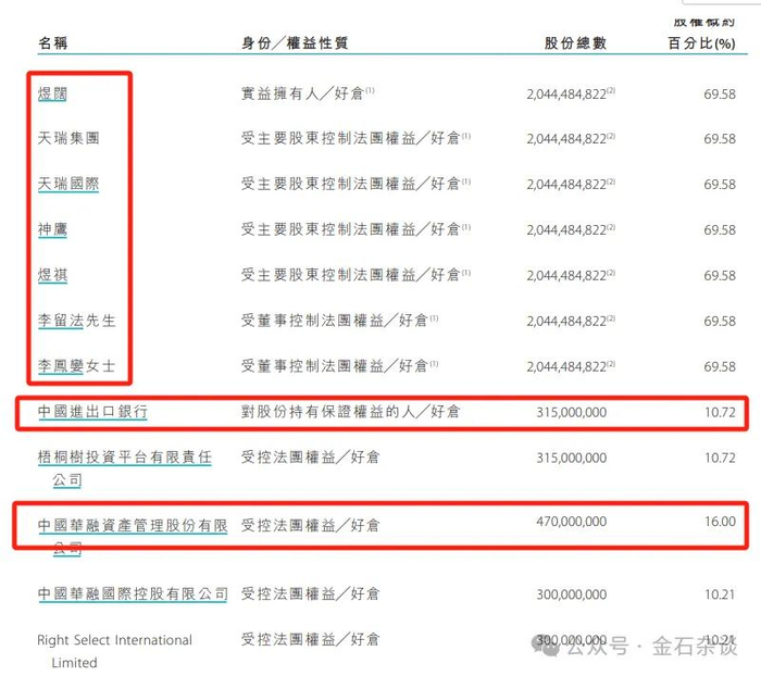 在公司持股中,公司实控人李留法及李凤娈夫妇持股69.58%,中国进出口银行持股10.72%,中国华融资产持股16%,中国信达持股7.83%。同样未见平安信托身影。