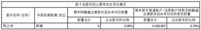 前十名股东较上期发生变化