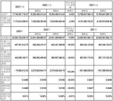 2023年,公司各项业务按照既定的发展战略保持健康、有序的发展,但受行业总体下行等影响,公司报告期内业绩有所下降,实现营业收入205.94亿元,同比下降13.98%;实现归属于上市公司股东的净利润4.67亿元,同比下降50.93%。