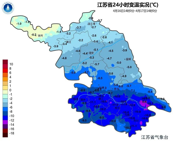 南部地区普遍有10℃左右的降温
