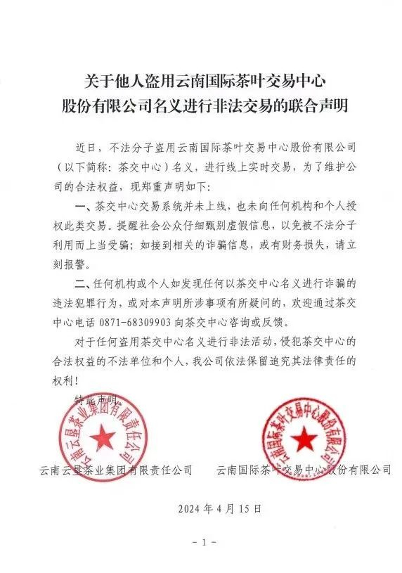 关于他人盗用云南国际茶叶交易中心股份有限公司名义进行非法交易的联合声明
