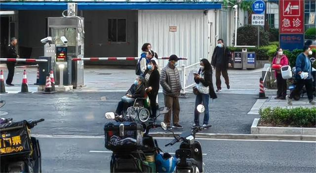 当天正值工作日的下午,并非就医的高峰时间。控江路为6车道,整个片区放眼望去,空间宽敞,但步行道依然乌泱泱挤满人。