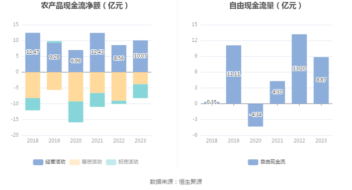 进一步统计发现,2023年公司自由现金流为8.87亿元,相比上年同期下降32.82%。