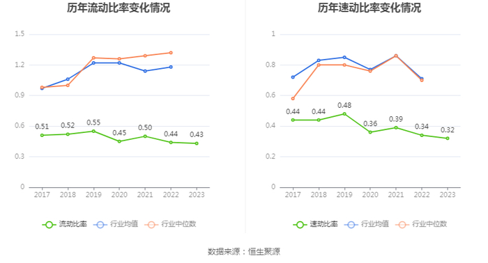 2023年,公司流动比率为0.43,速动比率为0.32。