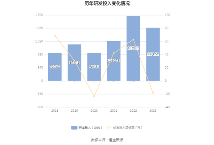 2023年全年,公司研发投入金额为1374.51万元,同比下降18.14%;研发投入占营业收入比例为0.25%,相比上年同期下降0.14个百分点。