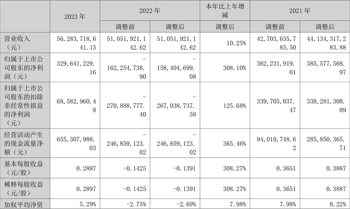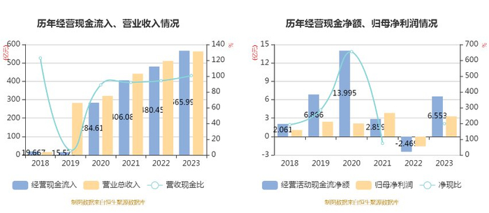 2023年,公司经营活动现金流净额为6.55亿元,同比增加9.02亿元;筹资活动现金流净额1.91亿元,同比减少18.84亿元;投资活动现金流净额-4.26亿元,上年同期为-14.55亿元。