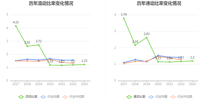 2023年,公司流动比率为1.23,速动比率为1.20。