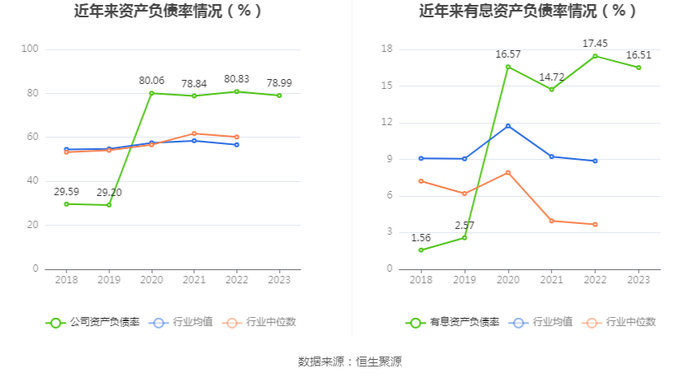 在偿债能力方面,公司2023年年末资产负债率为78.99%,相比上年末下降1.84个百分点;有息资产负债率为16.51%,相比上年末下降0.94个百分点。
