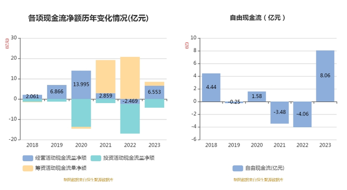 进一步统计发现,2023年公司自由现金流为8.06亿元,上年同期为-4.06亿元。