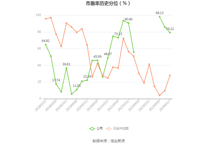市盈率为负时,不显示当期分位数,会导致折线图中断。