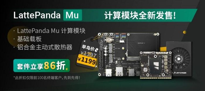 LattePanda Mu的单价为1099元。LattePanda Mu套件包括LattePanda Mu、LattePanda Mu Lite Carrier和LattePanda Mu Active Cooler,原价为1397元,首批100名用户可享有促销价1199元。 如需了解更多关于LattePanda Mu及其卓越功能的详细信息,请访问官方LattePanda Mu网站。购买可前往DFRobot线上商城 https://www.dfrobot.com.cn/goods-3916.html。
