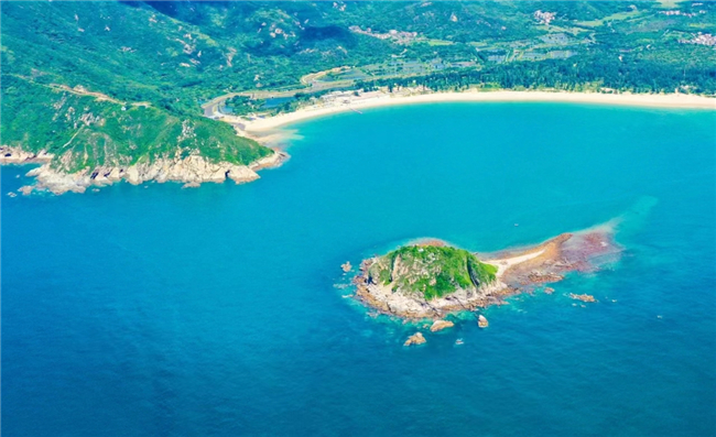 桔钓沙:桔钓沙沙滩位于大鹏新区南澳办事处,三面青山相拥,沙滩宽阔,呈月牙状,长约1000米,宽50米,沙质细腻柔软,沙粒细白,因此也被称为“银滩”。“果冻海”“玻璃海”“深圳版马尔代夫”……说的都是桔钓沙。水清沙幼,海天一色,桔钓沙梦幻般晶莹的海景,火得深圳无人不知。