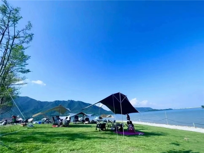 海月创意营地:营地“依山傍海、人海相依”,配套设施丰富,目前位列高德地图“深圳市露营野餐”第3名,有帐篷区、网红箱房区、美食摊位区、团建活动区……是一个集度假、团建和亲子娱乐的理想场所,以户外网红箱房露营为特色,有轻奢天幕烧烤、箱房KTV、公司团建、亲子娱乐、飞机乘坐、生日聚会、户外求婚等多样化活动区域。