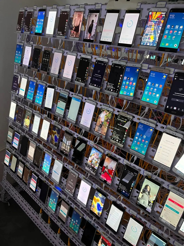 在王某的工作室里,有一个实体机房,密密麻麻地排列着几千部手机,一旦接到增加虚假人气的订单,王某就利用操控软件,让机房里的大量手机进入指定直播间“充人头,增人气”,最后再按进入直播间的时间和手机数量结算非法获利。