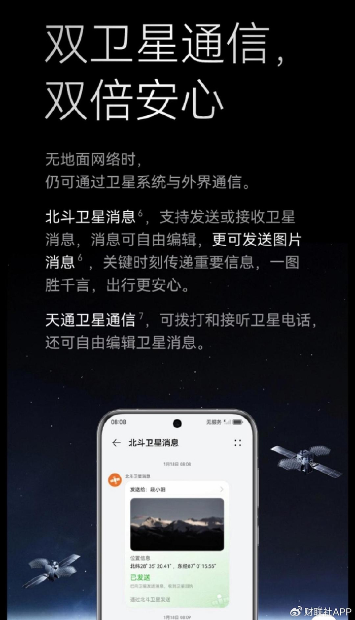 ▍北斗卫星消息升级 支持发送图片