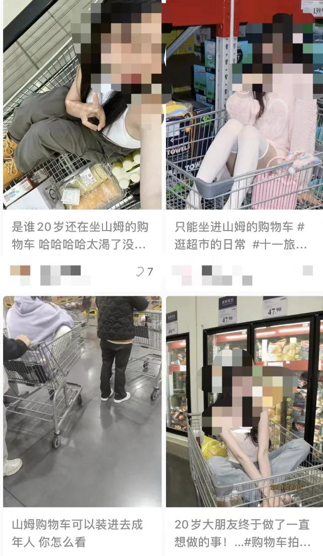 对此,有网友表示购物车是用来装东西的,不是用来坐的。