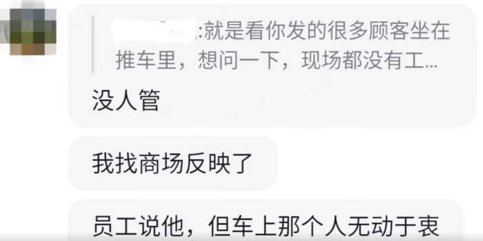 孟苏悠:换个思路感觉可以出个推人的车,如果只是说禁止,感觉对她们没法劝解,还影响别人的感受,两方都会不舒服,而且这种车的承重也是个问题,万一坏了,让人受伤了还得赔钱,所以不如出个推人的车,对商场来说一举多得。