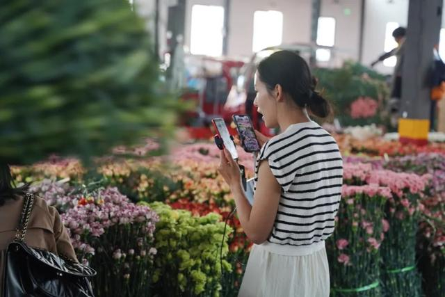 越来越多“鲜花人”通过电商直播工具将斗南的鲜花送出去。