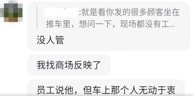 @孟苏悠:换个思路感觉可以出个推人的车,如果只是说禁止,感觉对她们没法劝解,还影响别人的感受,两方都会不舒服,而且这种车的承重也是个问题,万一坏了,让人受伤了还得赔钱,所以不如出个推人的车,对商场来说一举多得。