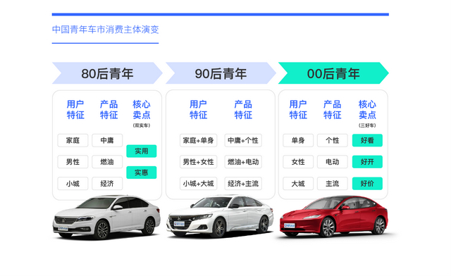 从80后青年到00后青年,助推中国青年车市的核心卖点由“双实车”向“三好车”演变,助推青年车市回归原点