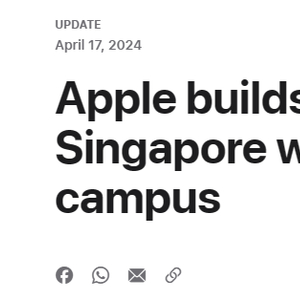 本周过半,在苹果首席执行官蒂姆·库克结束了对越南、印尼的访问后,有媒体消息透露,库克随后将前往新加坡。在此之际,苹果官网发布声明称,将扩大在新加坡的园区规模、并拓展业务。