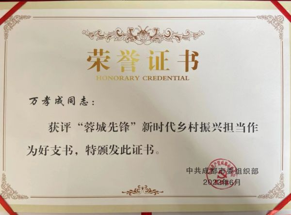 “一份付出,一分收获。”近年来十八湾村先后荣获“全国民主法治示范村、全国乡村治理示范村、全国文明乡风建设典型案例、全国和美乡村百佳范例、四川省先进党组织、四川省百强名村、四川省十佳产业兴旺村、四川省百个网红‘打卡点’”等国家、省、市级荣誉60余项;万孝成个人获得“四川省乡村振兴担当作为好书记”“成都市‘蓉城先锋’新时代担当作为好支书”等国家、省、市、区荣誉20余项。