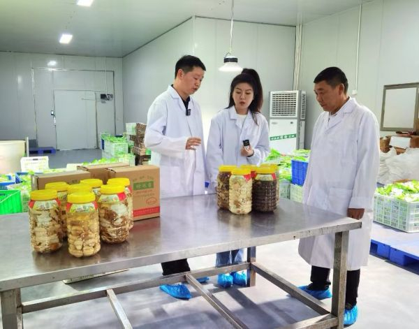 万孝成与科研人员研发食用菌产品