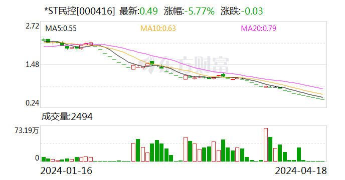 民生控股在公告中表示,截至2024年4月17日,公司股票收盘价连续15个交易日低于1元。根据相关规定,若公司股票收盘价连续20个交易日低于1元,公司股票将被深圳证券交易所终止上市交易。