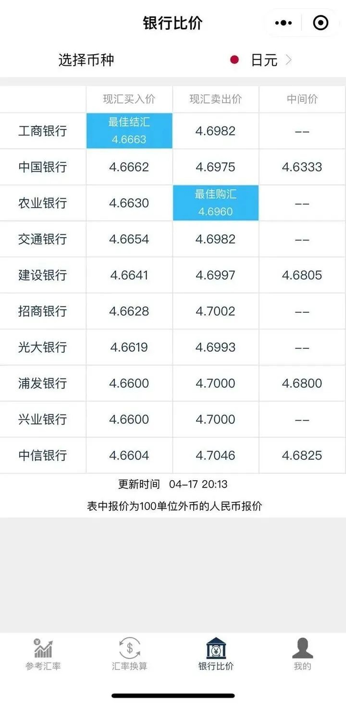 据潮新闻4月18日报道,这两天,杭州市民程女士有些懊恼。因为打算过段时间去日本旅游,她最近分别在汇率为4.76、4.72时买过两次日元外汇。