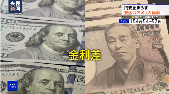 近日,日元汇率持续下跌,纽约外汇市场日元对美元汇率,一度跌至1美元兑换超过154日元,创下近34年来新低。
