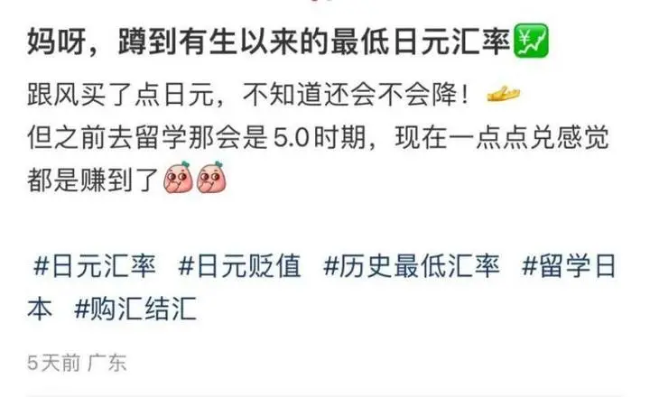 在社交平台,像程女士一样“囤日元”的网友也不在少数。