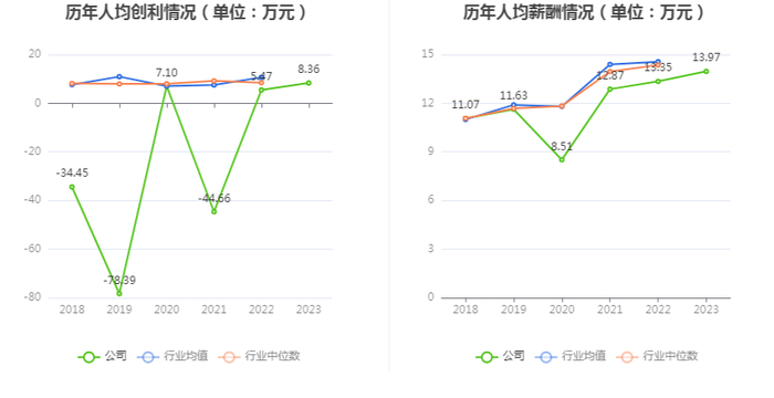 截至2023年末,公司员工总数为1685人,人均创收47.56万元,人均创利8.36万元,人均薪酬13.97万元,较上年同期分别增长5.32%、52.77%、4.69%。