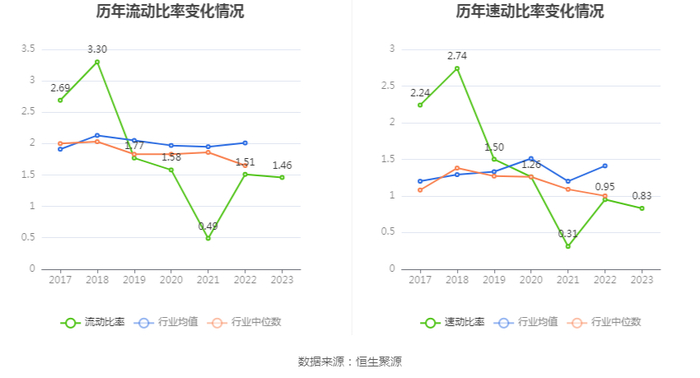 2023年,公司流动比率为1.46,速动比率为0.83。