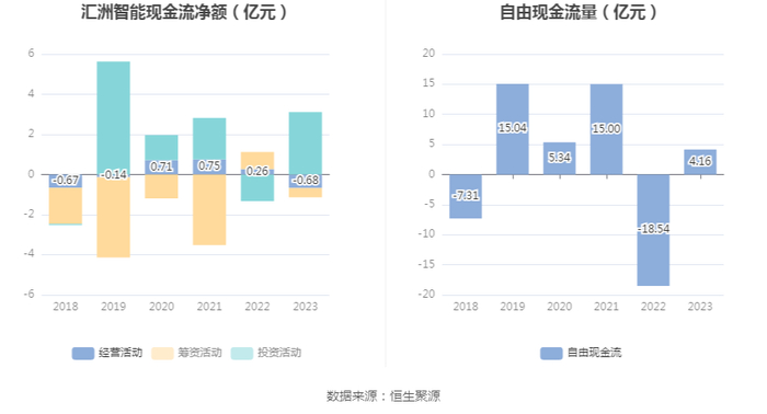 进一步统计发现,2023年公司自由现金流为4.16亿元,上年同期为-18.54亿元。