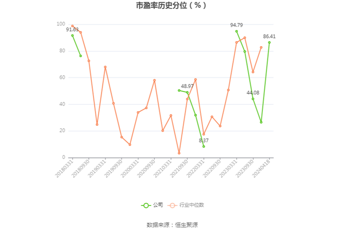 市盈率为负时,不显示当期分位数,会导致折线图中断。