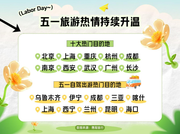 亲子游方面,携程租车数据显示,家庭出游占比达45%,预订车型以SUV和商务车为主,房车预订量同比大幅增长近7倍。乌鲁木齐、伊宁、成都、三亚、喀什、上海、西宁、兰州、昆明、海口等城市,是自驾出游的热门目的地;烟台、大同、太原、宁波、呼伦贝尔等城市,是租车订单同比增长较快的黑马城市。