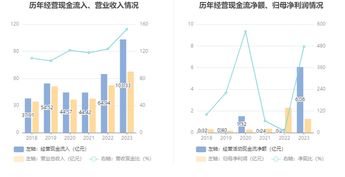 2023年,公司营业收入现金比为152.83%,净现比为476.77%。
