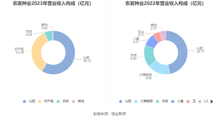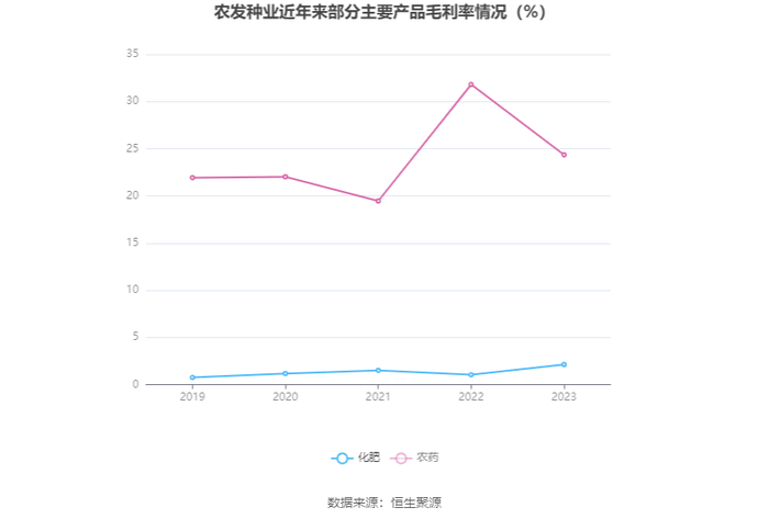分产品看,化肥、农产品、农药2023年毛利率分别为2.12%、15.66%、24.35%。