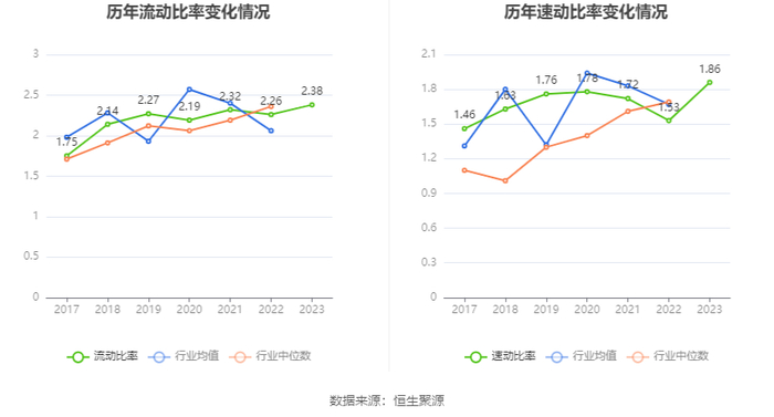 2023年,公司流动比率为2.38,速动比率为1.86。