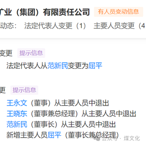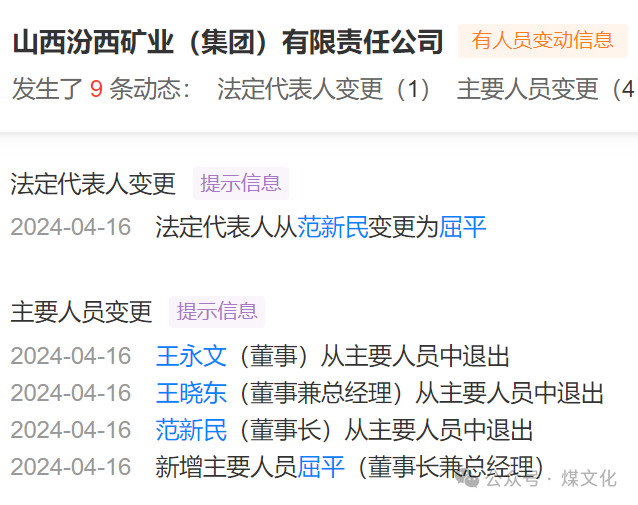 近日,山西汾西矿业(集团)有限责任公司人员发生变动,详情如下: