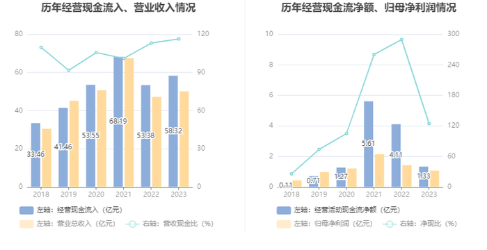 2023年,公司营业收入现金比为116.41%,净现比为124.50%。
