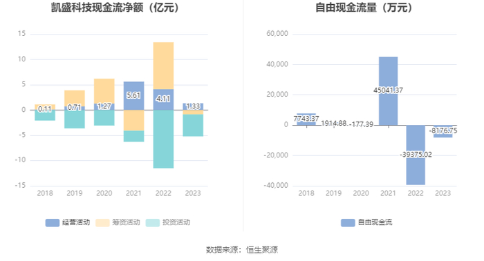2023年,公司经营活动现金流净额为1.33亿元,同比下降67.50%;筹资活动现金流净额-8715.03万元,同比减少10.15亿元;投资活动现金流净额-4.35亿元,上年同期为-11.52亿元。