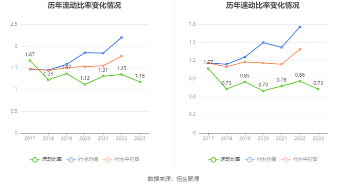2023年,公司流动比率为1.18,速动比率为0.73。