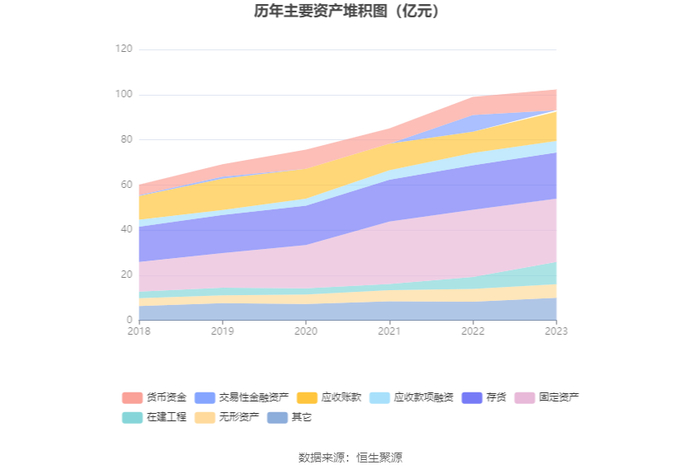 资产重大变化方面,截至2023年年末,公司交易性金融资产较上年末减少90.40%,占公司总资产比重下降6.75个百分点;在建工程较上年末增加86.98%,占公司总资产比重上升4.32个百分点;应收账款较上年末增加37.54%,占公司总资产比重上升3.15个百分点;固定资产较上年末减少5.78%,占公司总资产比重下降2.65个百分点。