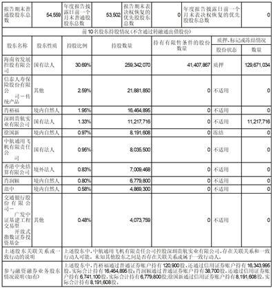 2018年本公司原控股股东航空工业通飞为降低海南发展的原子公司海南特玻的债务和担保风险,承接了本公司为海南特玻在农行澄迈县支行贷款提供担保79,760万元的担保责任。本公司、海南特玻及通飞三方签订《反担保合同》,为该笔债务提供反担保,担保金额为79,760万元,担保物为石岩园区城市更新项目中本公司依法所取得的土地使用权及建筑物业,同时将经营石岩物业所获得的全部应收账款进行质押。