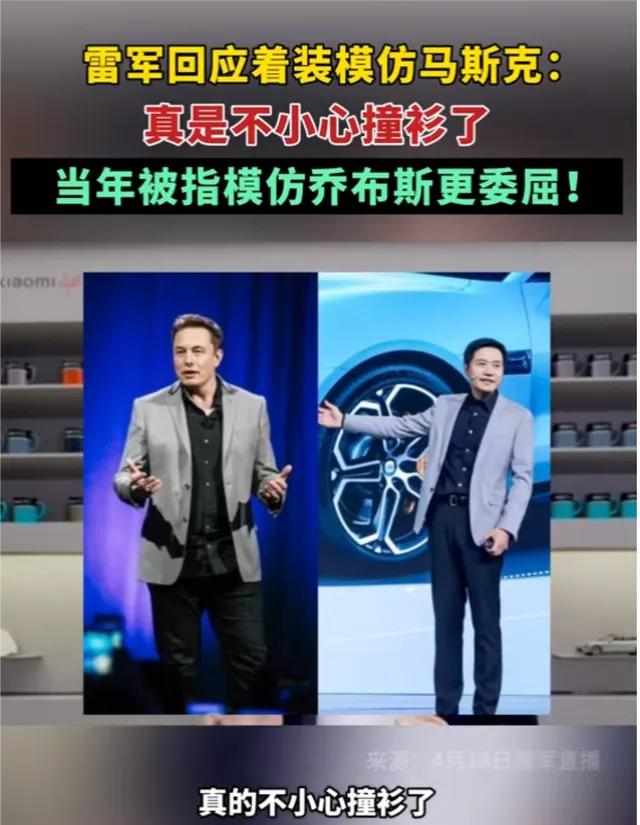 此前市场流传雷军的着装十分用心,做手机时模仿乔布斯,做汽车时对标马斯克。