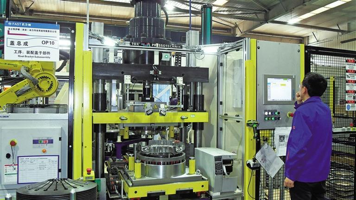 4月9日,在法士特伊顿(西安)动力传动系统有限责任公司生产车间,工人在操作数控设备。