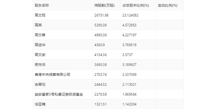 年报显示,2023年年末公司十大流通股东中,新进股东为香港中央结算有限公司、古翠花,取代了三季度末的高凯丽、大成策略回报混合型证券投资基金。